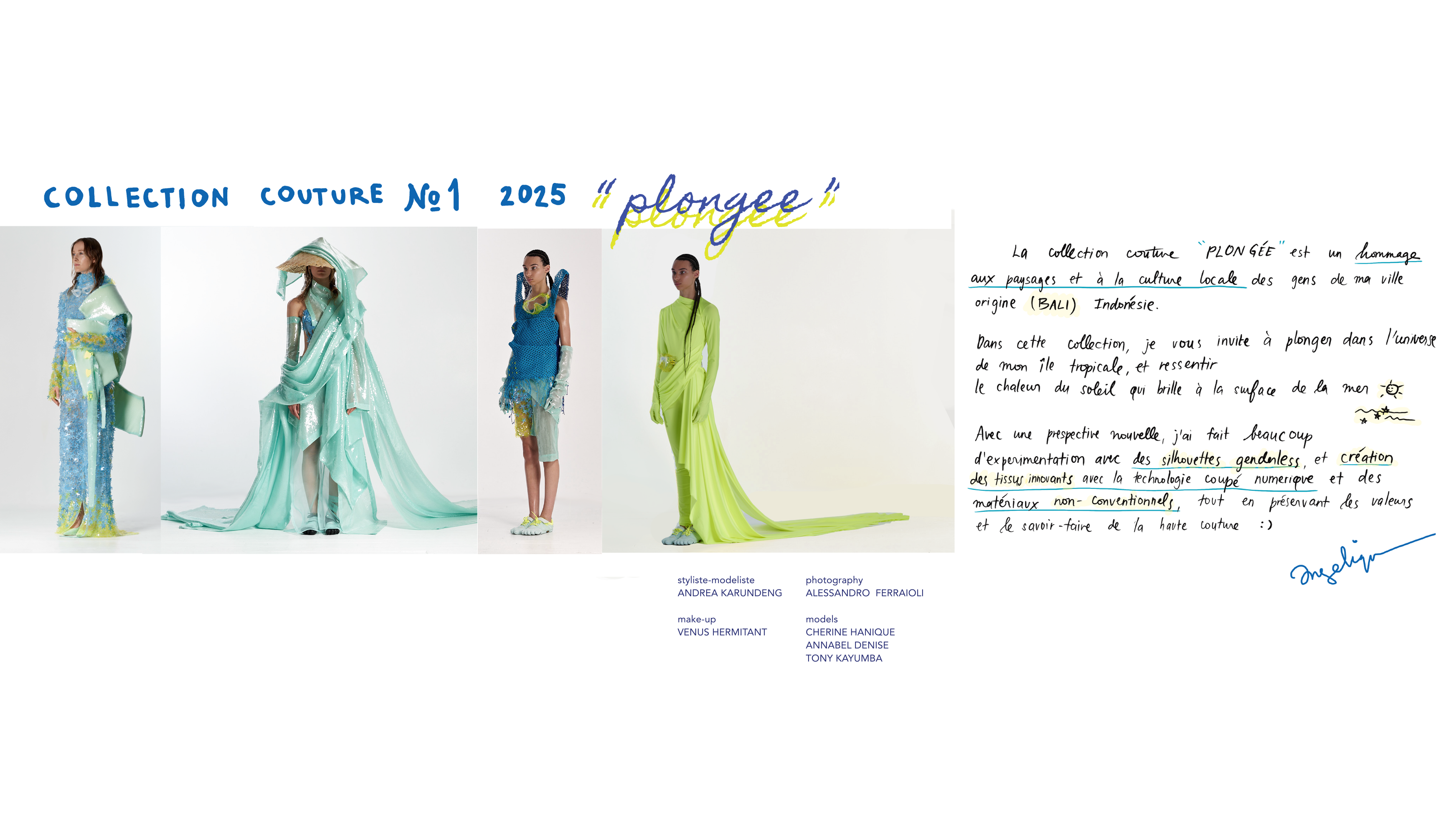 Andrea’s work is characterized by her innovative approach to couture, blending meticulous craftsmanship with modern technology and forward-thinking design. She is dedicated to pushing the boundaries of traditional fashion by exploring new techniques and materials, creating innovative pieces that merge innovation with couture know-hows.